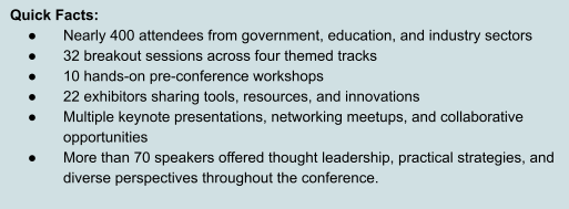 Overall, the 2025 NICE K12 Cybersecurity Education Conference reaffirmed the power of collaboration in shaping the future of cybersecurity education. By bringing together key stakeholders, the conference highlighted both the urgency and the opportunity to build strong, inclusive pathways into cybersecurity from an early age. Attendees left with practical strategies, new partnerships, and renewed inspiration to expand access, strengthen awareness, and empower the next generation of cyber-ready learners.